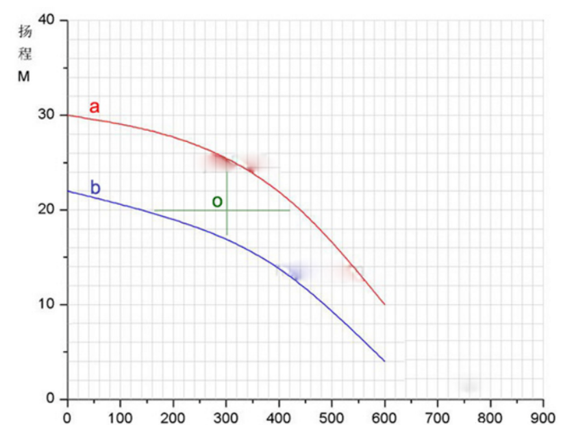 例如,你想知道20米扬程的水泵流量是多少,那么就在垂直座标(y轴)20米的位置画一条水平线,与曲线交叉处就是此水泵的真实流量值,以上图中20米扬程为例,曲线A产品与曲线B产品流量分别为(140,440)L/min.
